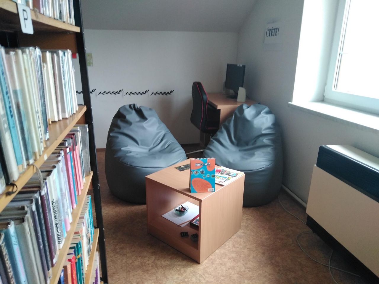 V knihovně je dále umístěn počítač s připojením na internet a kopírka.